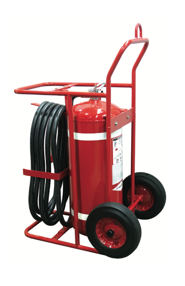 Our Amerex wheeled product line has ofers a large selection of movable units. These include Dry Chemical, Wet Chemical, Gaseous Clean Agents, and Class D for metal fires.