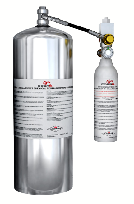 The Cobra commercial kitchen fire suppression system, manufactured by Amerex Corp. in USA is UL Listed. It is a solution for the hazardous fires that originate from the vegetable-based cooking oils which burn in much faster manner. It consists of a contemporary stainless steel design throughout the system complements sleek kitchen appliances. It is the first commercial kitchen fire suppression system with fully electronic actuation using the new "Strike" electronic control system.